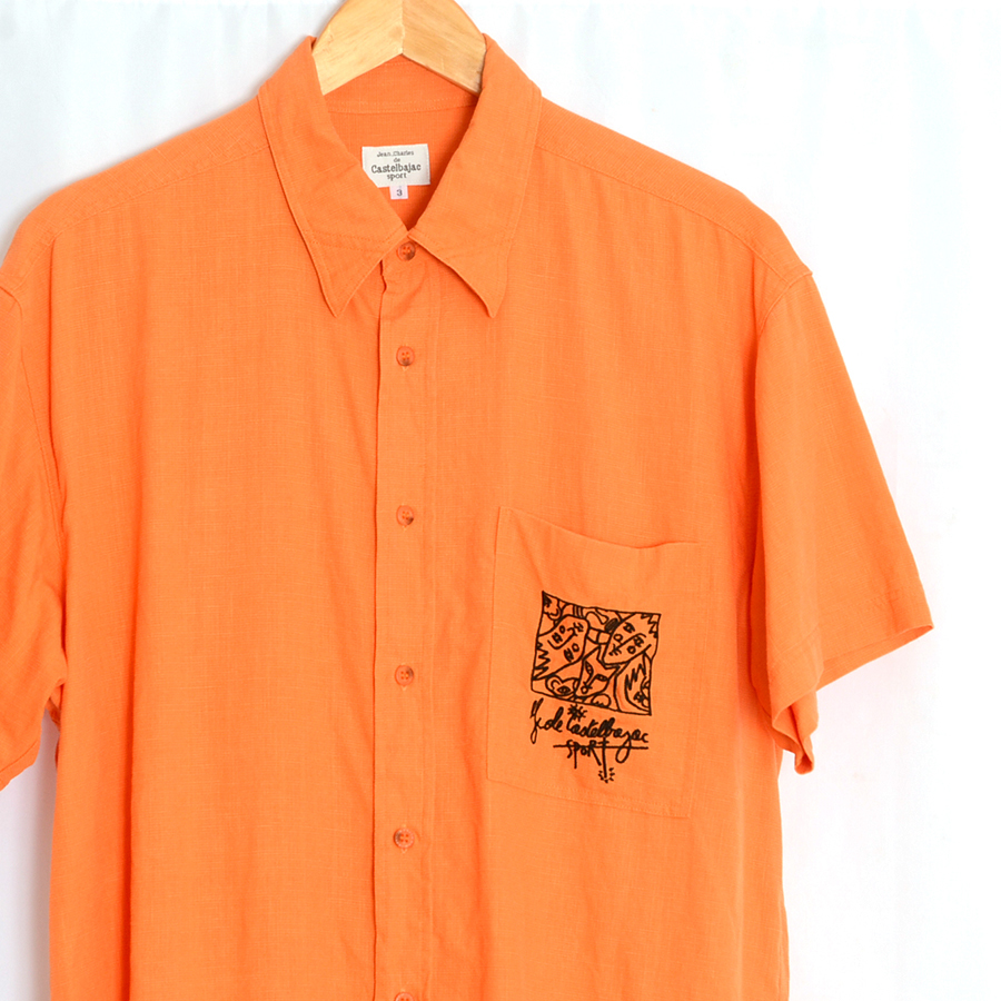 - AA186 カステルバジャック 半袖シャツ 3 / L 肩幅49 麻 メール便可 xq