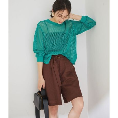 > 美品 ROPE ロペ ショート丈 ローゲージ長袖ニットセーター トップス レディース 緑 グリーン サイズM*MC211