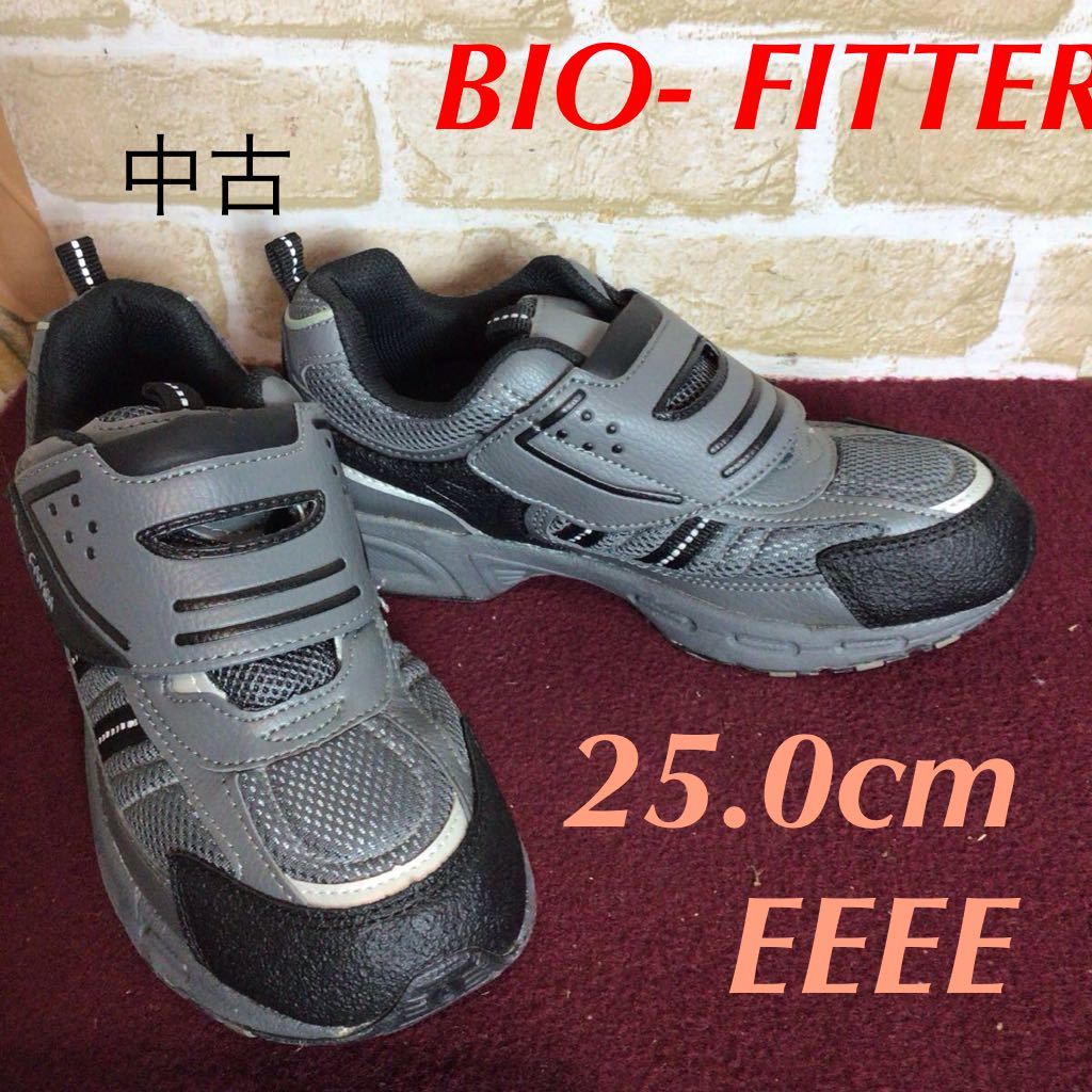 - 【売り切り!送料無料!】A-237 BIO- FITTER!スニーカー!25.0cm EEEE!グレー!黒!反射板つき!ウォーキング!散歩!中古