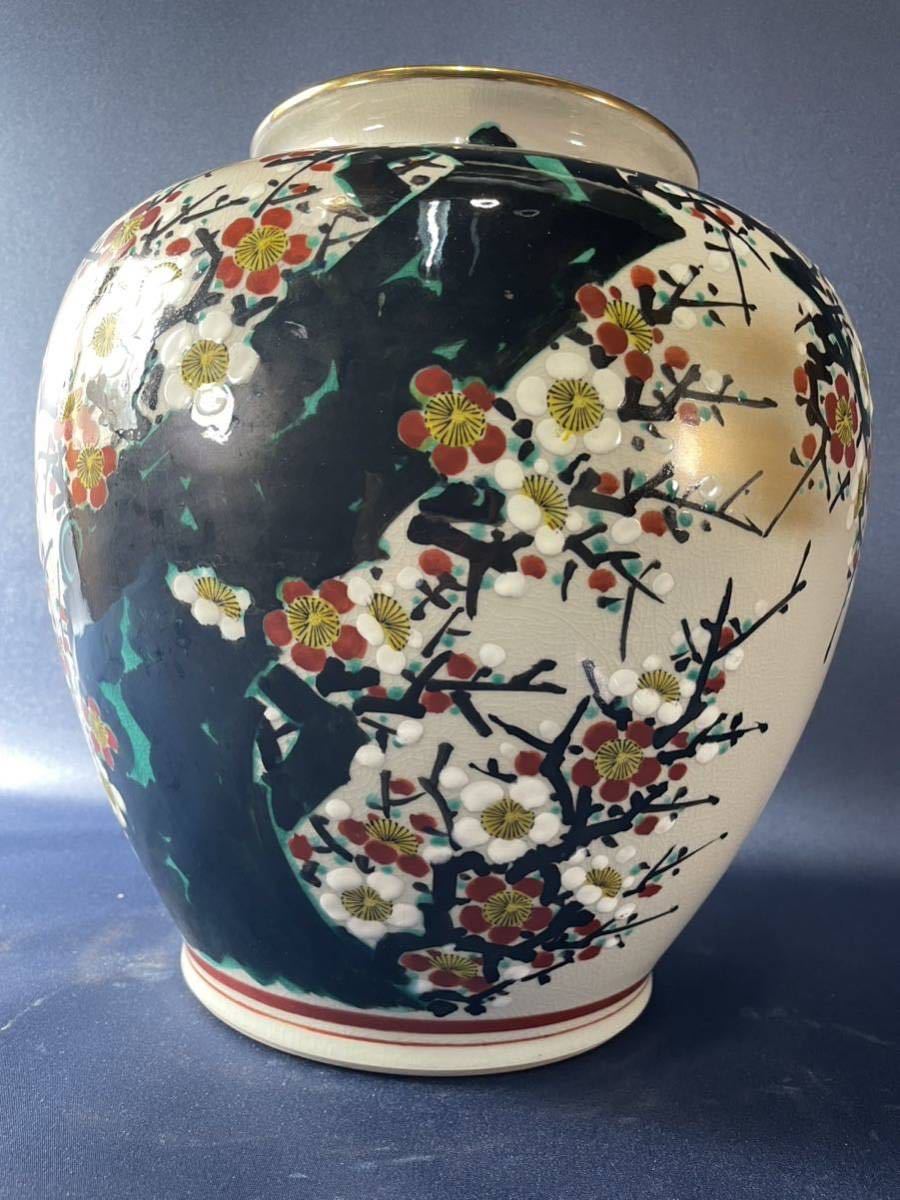 - m4 九谷焼 花瓶 色絵 梅 大型 花生 希少 古美術 骨董 時代物