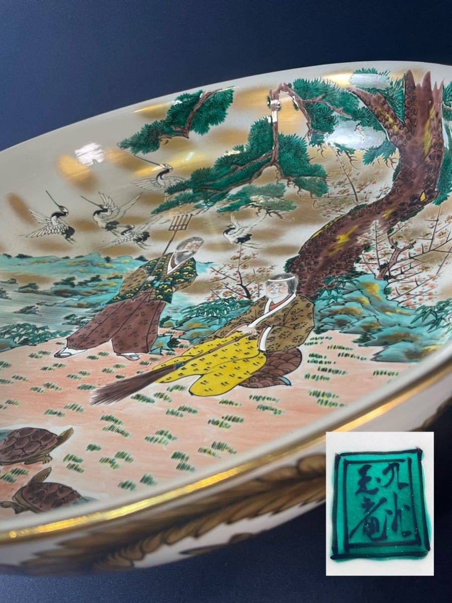 - m2 九谷焼 玉竜 約46cm 色絵大鉢 高砂図 希少 特大 古美術 骨董 時代物
