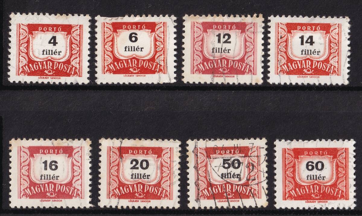 - ハンガリー/外国切手8枚セット/4~60filler/PORT0/LEGRADY SANDOR/MAGYAR POSTA