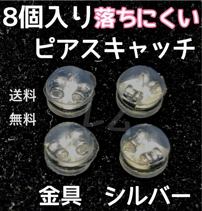 - 送料無料 8個セット 丸形 シルバー 銀色 ピアスキャッチ ダブルロック No.33 B