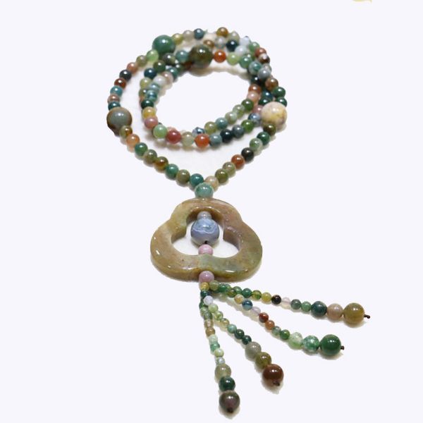 - [EasternStar] 海外発送 モスアゲット 苔瑪瑙 水草瑪瑙 ネックレス ペンダント直径45-55mm 玉径4-10mm 長さ約65-70㎝ タイプ4