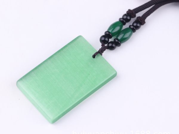 - 海外発送 人造石 キャッツアイ 猫目石 Cats eye 安全守り ネックレス ペンダント58/36/7mm パワーストーン グリーン