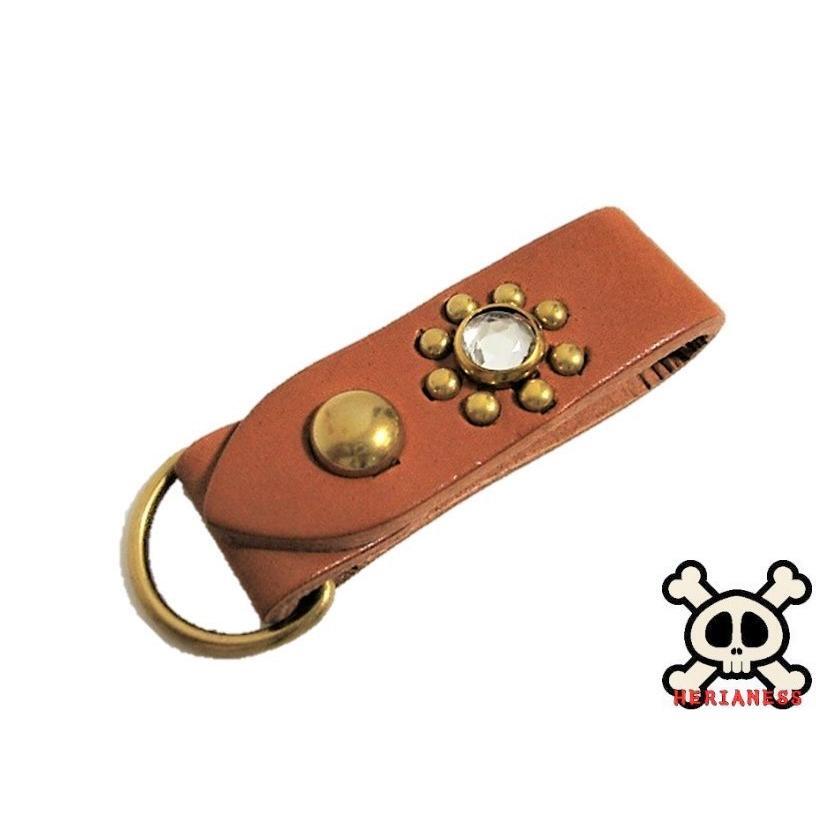 - 栃木レザー(牛革)真鍮スタッズループホルダー キャメル(クリスタルスポッツ)一枚革 ハンドメイド