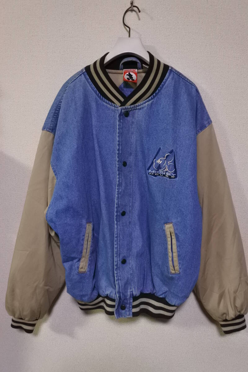 > 90's Disny Micky Mouse Denim Varcity Jacket size XL ディズニー ミッキー デニム スタジャン ビンテージ