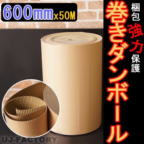 > 【法人様宛・個人様宛配送可能】★超丈夫!クラフト 巻きダンボール 600mm×50m【x1本】巻き段/巻段★表側クラフト50g×裏側クラフトNC110g