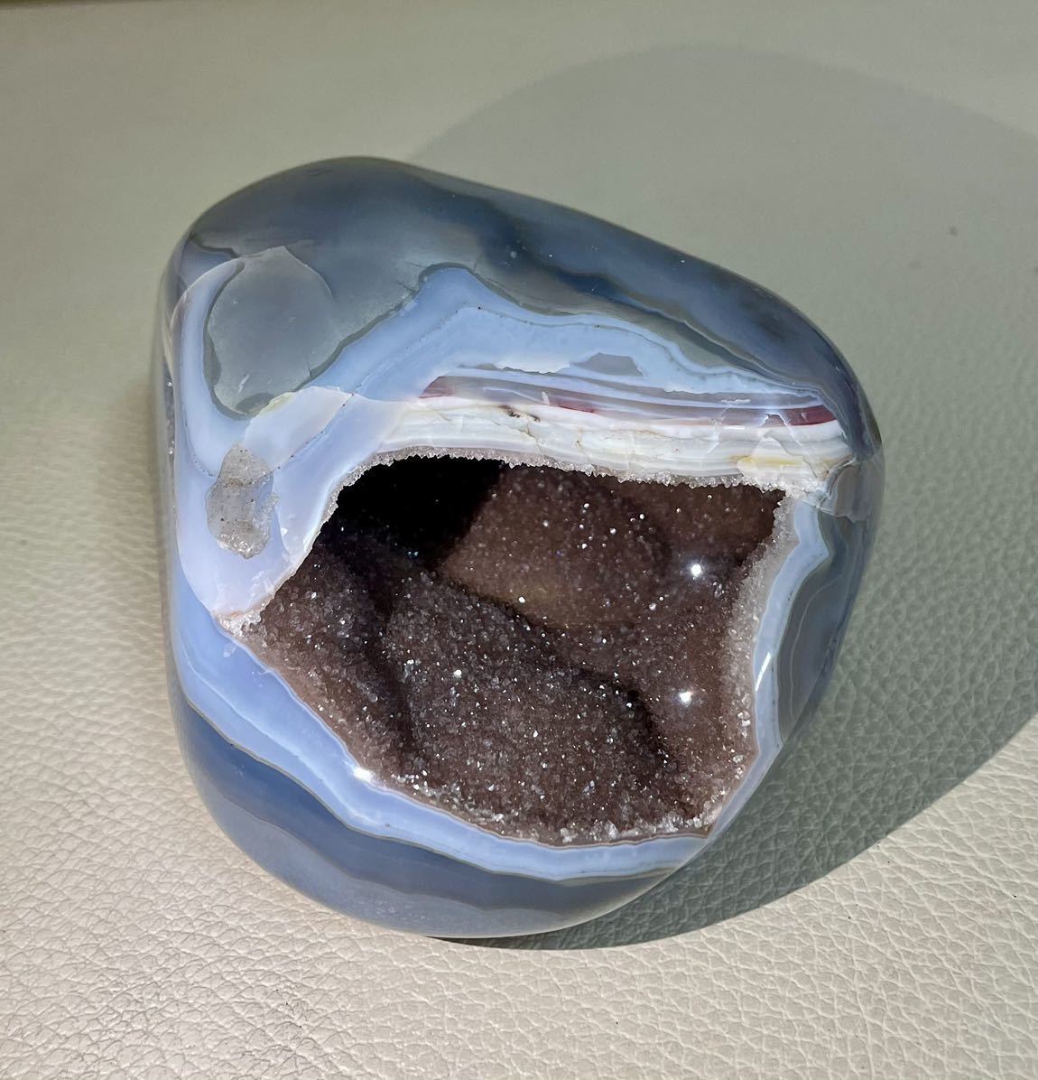 - トレジャー瑪瑙 鯨模様 ジオード マネーボックス 浄化 晶洞 置物インテリア 魔除 お守 幸運 ラッキー 風水晶 原石 パワーストーン 台座付き