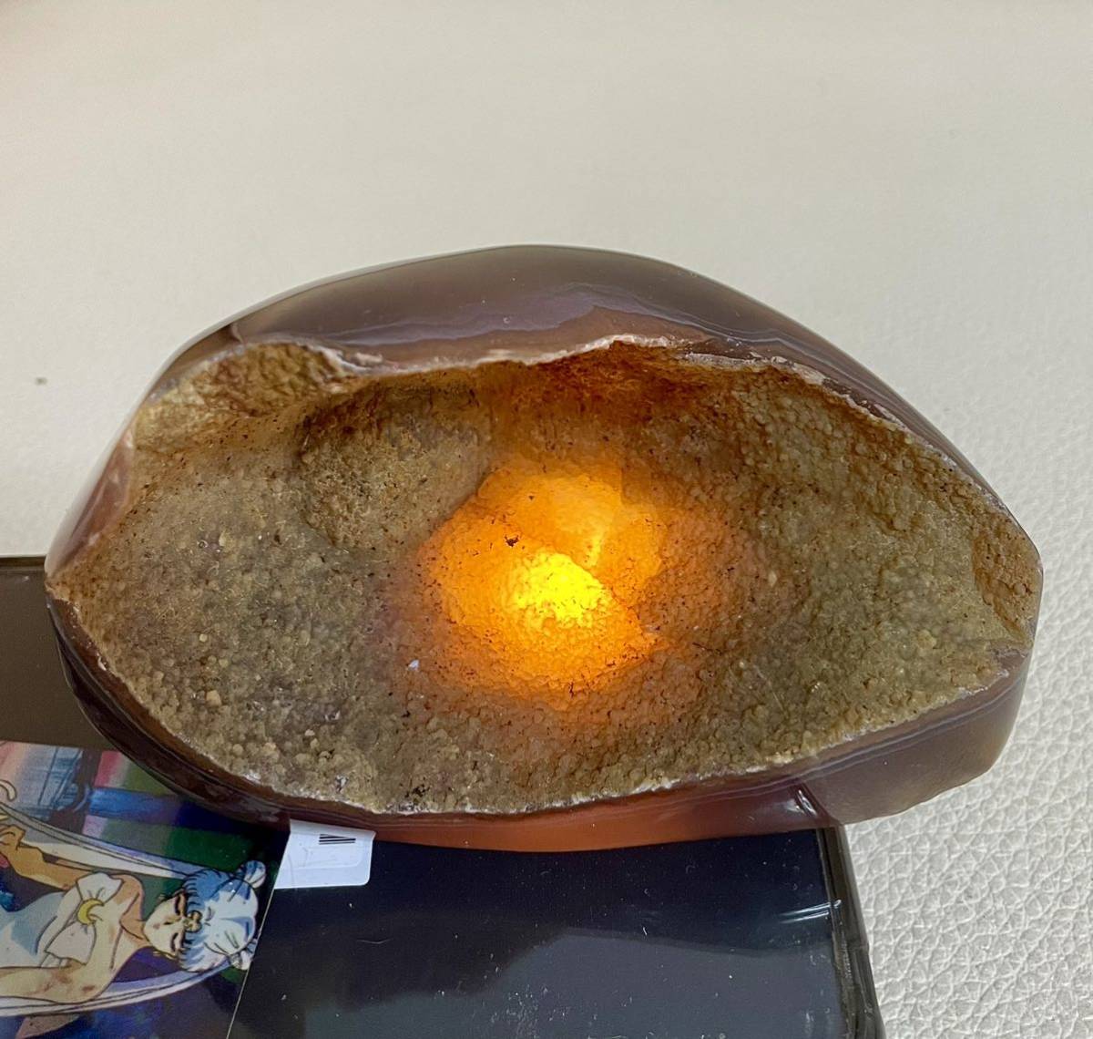 - 瑪瑙のジオード アゲート 浄化 幸運 ラッキー 魔除 お守 パワーストーン 置物インテリア 浄化 天然石置物 笑口 マネーボックス 風水晶 晶洞