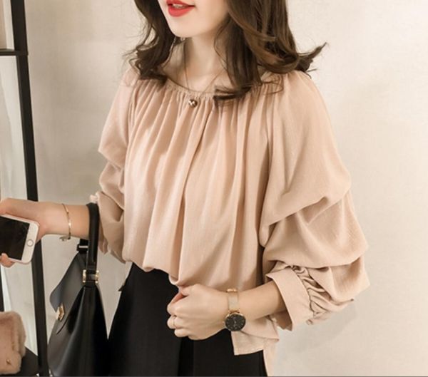 - 春夏秋新作 シンプル ゆったり 2way 袖ふんわり 大きいサイズ シフォン シャツブラウス / ピンク