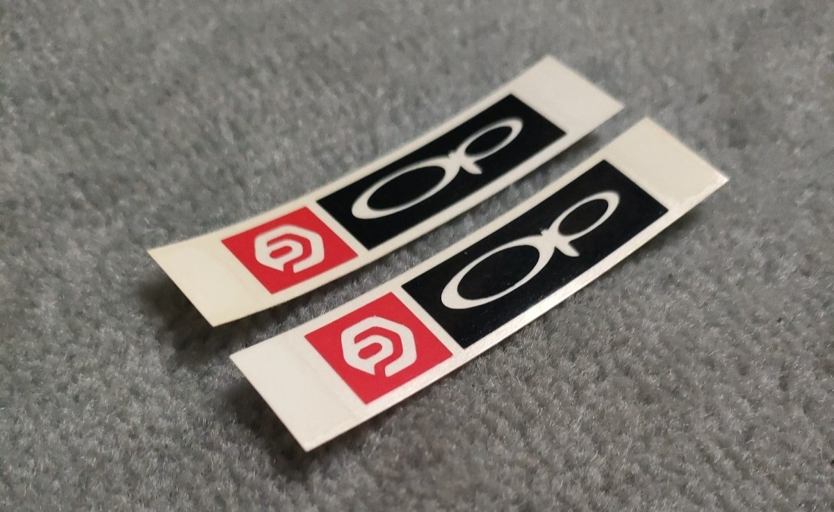 - 新品未使用正規品本物OP人気抜文字カッティングステッカー レッド/ブラック2枚セット サイズ 横約4.8cm縦約1.2cm 送料¥85〜
