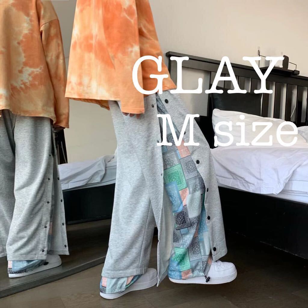 - ワイドパンツ ボトムス ペイズリー サイドボタン ストレートパンツ ユニセックス 男女兼用 グレー M
