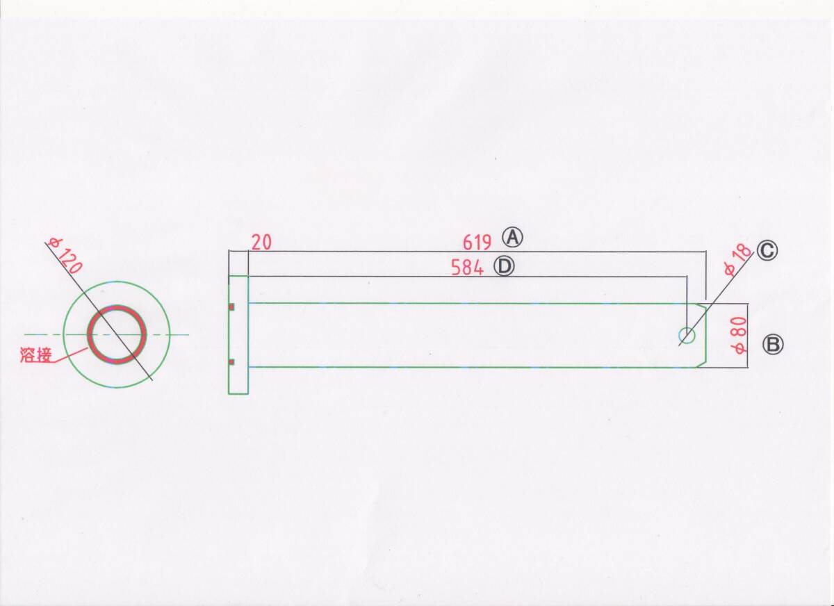 - NO1743 Φ80用 溶接ツバ下619mm バケットピン 重機 パワーショベル 1本