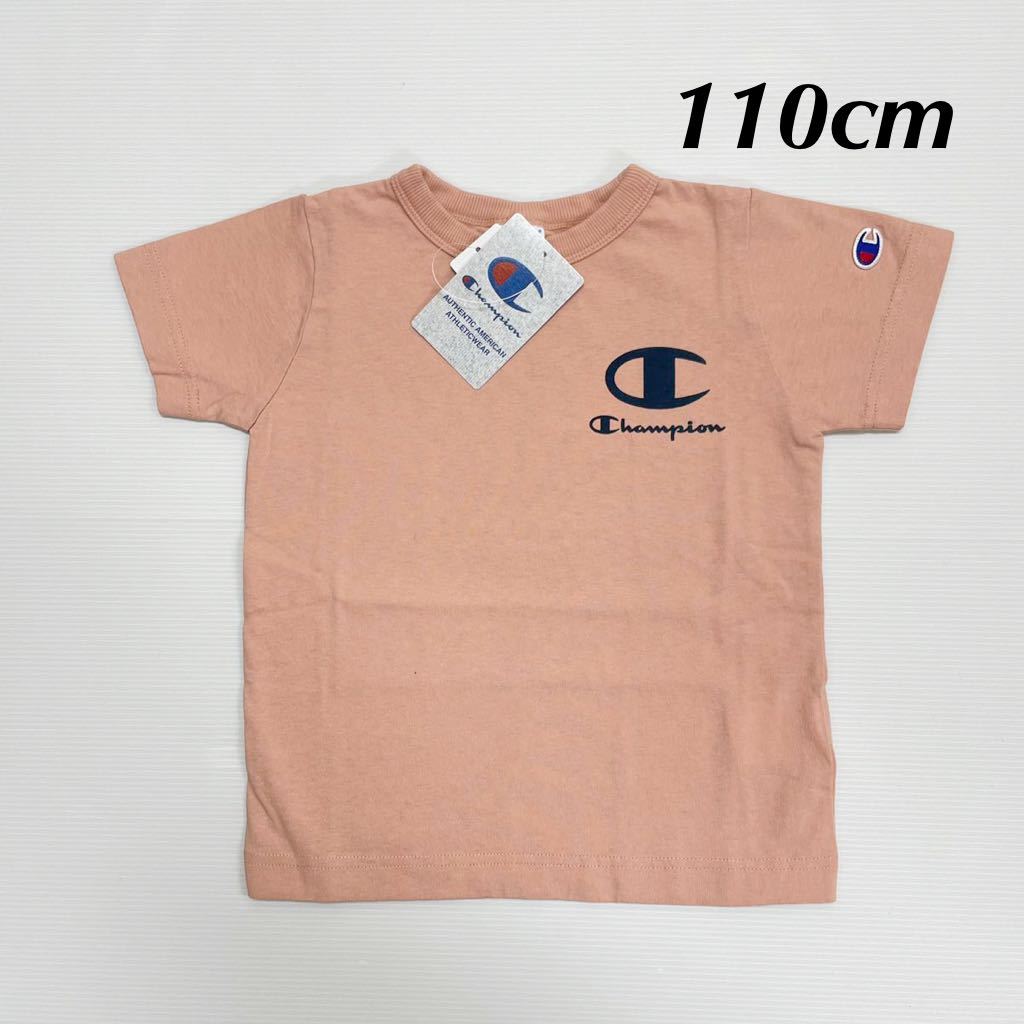 - 新品17127 Champion チャンピオン 110cm サーモンピンク 半袖Tシャツ 胸背中ロゴプリン 袖刺繍 綿100% シンプル 男女兼用 キッズ