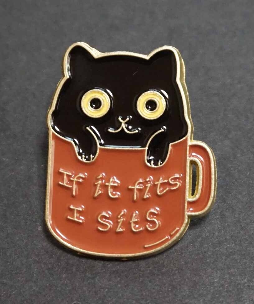 - 《黒猫マグカップ入浴猫》新品『萌猫.ネコ /If it fits I sits』■ねこ好き (=^・^=)BLACK CAT キャット■ピンバッジ バッチ■ラッキー開運
