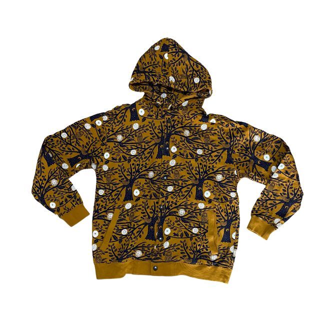 > 美品 グランフ 総柄 フーディースウェット カーディガン スナップボタン graniph フクロウ 鳥 ツリー 木 使用感薄い美品 雅瀬357