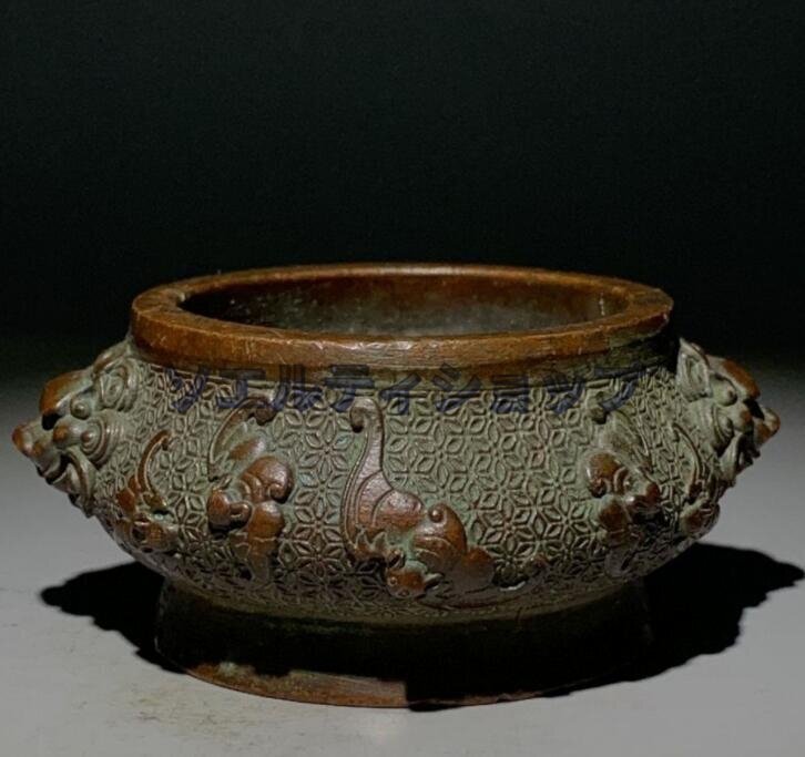 - 特価★農村紫銅香炉燻香炉双獅子五福老銅器高4 CM