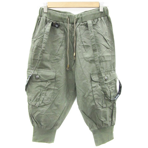 - ピンクラテ PINK latte カーゴパンツ ジョガーパンツ 七分丈 サスペンダー付き M カーキ /YM10 レディース