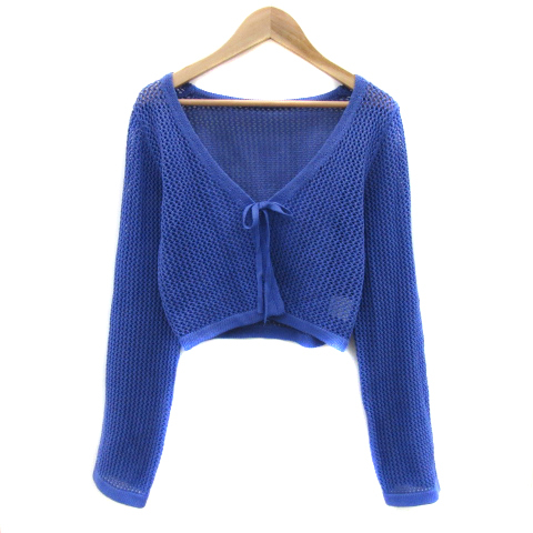> ヘザー Heather ニットカーディガン ショート丈 Vネック 前開き 透かし編み リボン F 青 ブルー /YS32 ■MO レディース