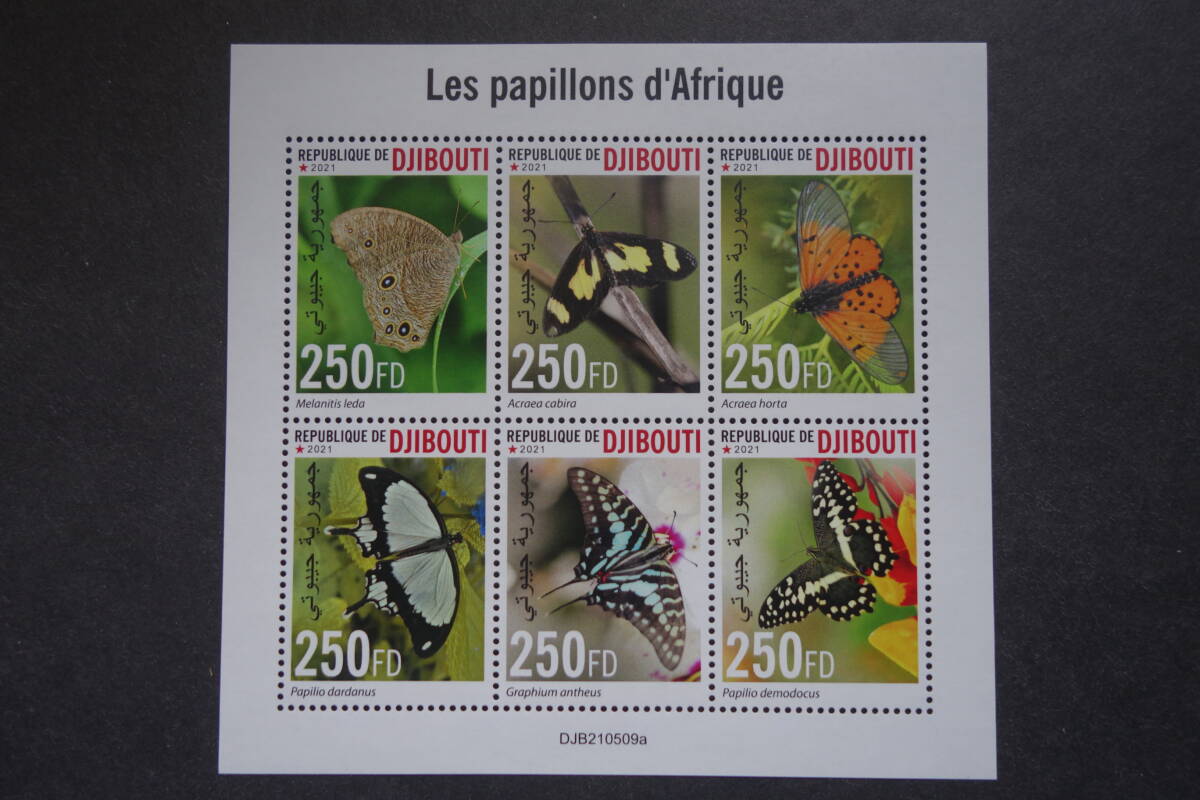 - 外国切手:ジブチ切手 「アフリカの蝶」 6種m/s 未使用
