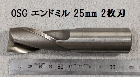 - H4★OSG 2枚刃 エンドミル Φ25mm HSSco (コバルトハイス) シャンク径Φ25mm★美品★
