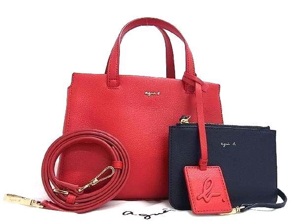 - ■新品同様■ agnes b. アニエスベー レザー 2WAY ハンドバッグ ショルダー レディース レッド系 FC0138