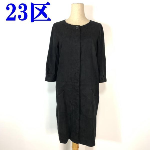 > 23区スウェード調切り替えステッチ長袖シャツワンピースブラックカジュアル ポケット有 薄手 透け感無 40 C8702