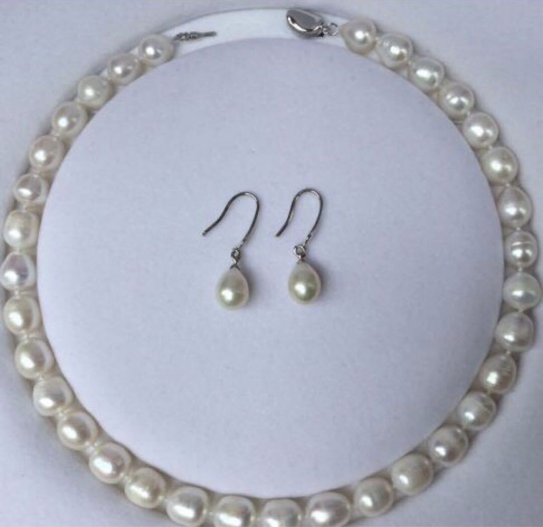 - 真珠ネックレス&ピアスセット本物米珠特大粒10-11mm冠婚葬祭フォーマルの定番人気柄ホワイト【買い得品期間限定セール