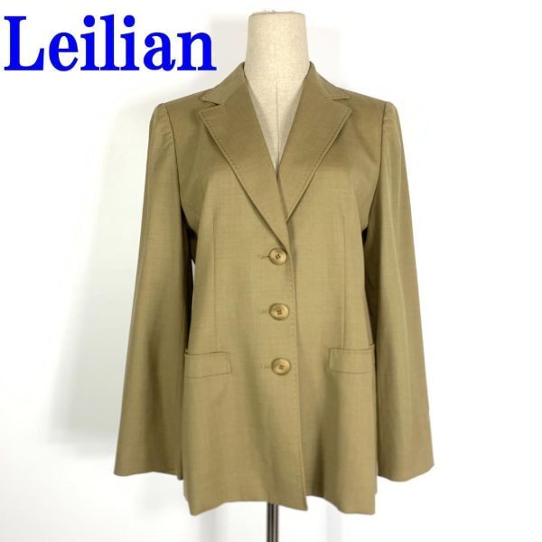 - Leilian レリアンウールテーラードジャケットベージュカジュアル ステッチ入り ポケット有 9 C9091