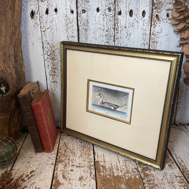 - 作者 詳細不明 部数限定 版画 鴨 額装 美術 アート 芸術 水鳥 ダック かも カモ シルクスクリーン リトグラフ 絵画