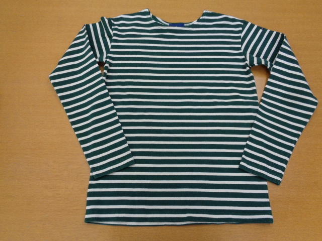 - フランス製 ユニセックス Le Minor GREEN×生成り ボーダー柄バスクシャツ SIZE 2