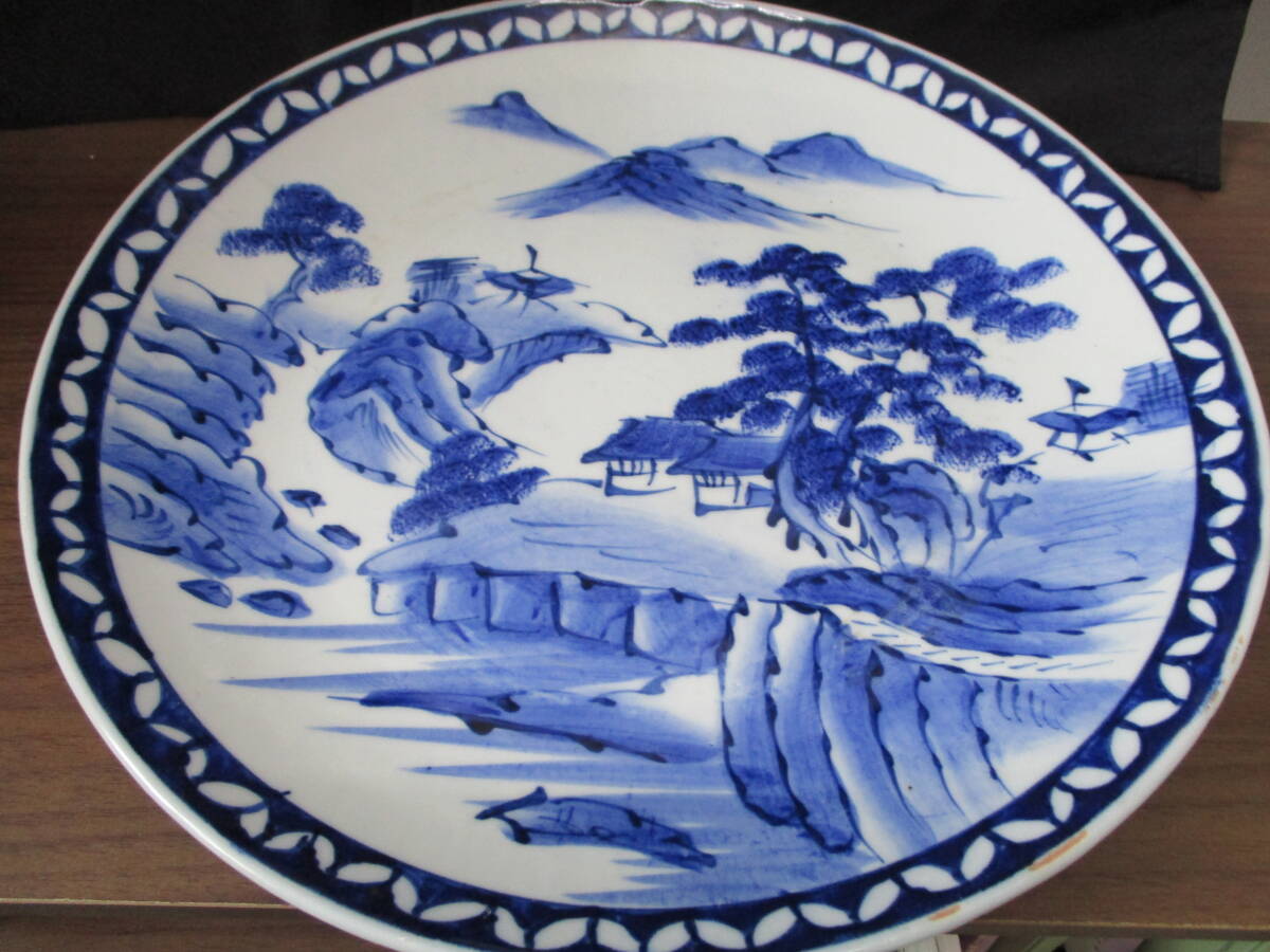 - ★大皿 風景 径31.5㎝ 高さ3.5㎝ ※汚れキズ・窯キズあり tm2403-23-4★