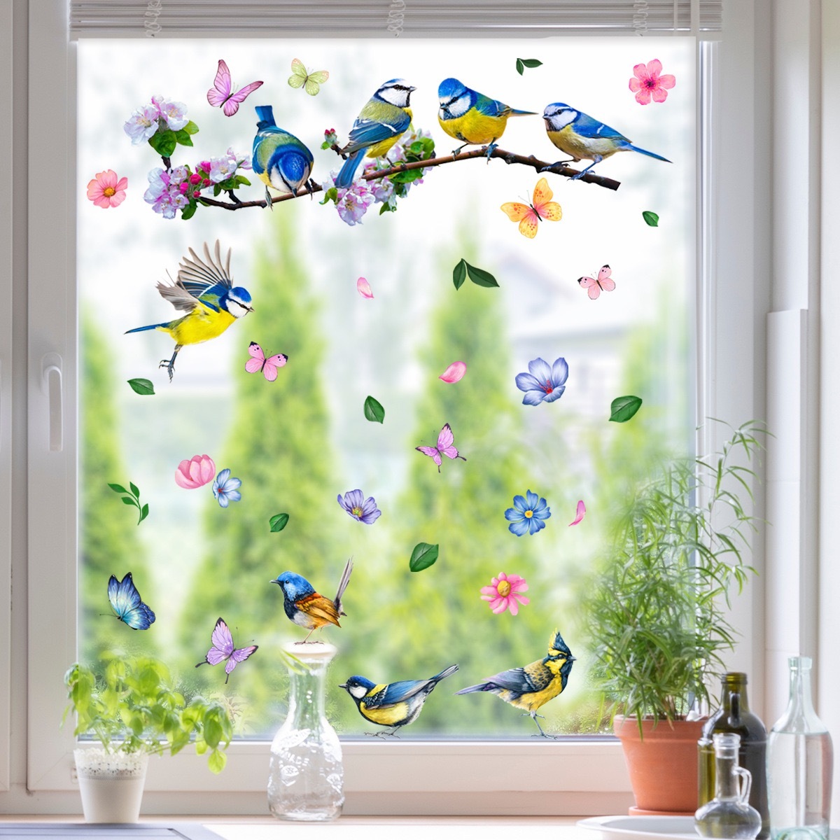 - ウォールステッカー YED091 鳥群れ 花 蝶 窓シール 癒す DIY 壁紙 インテリアシート 剥がせるシール 送料無料