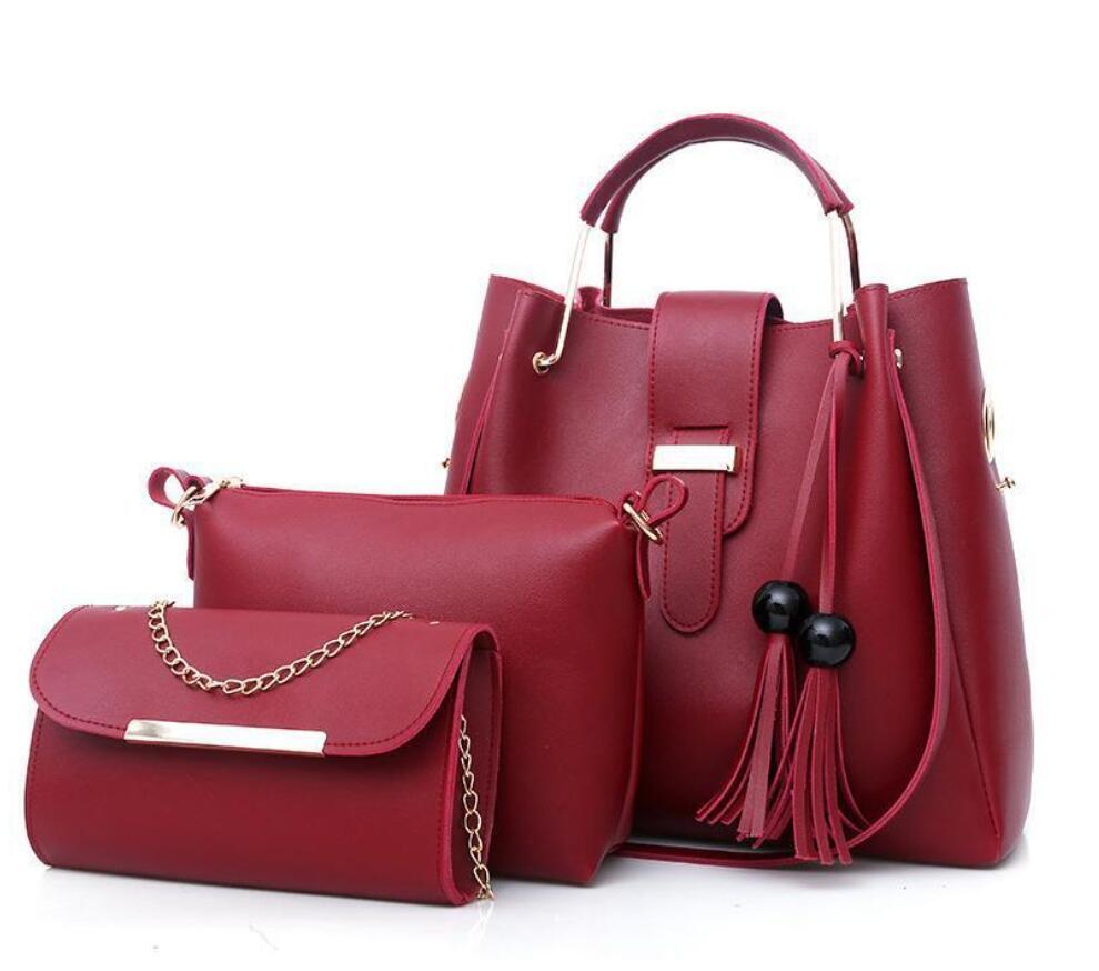 - 6色選択可 / 新入荷 大人気 レディースバッグ 3点セット レザー ショルダーバッグ ハンドバッグ 財布 トート PU / レッド