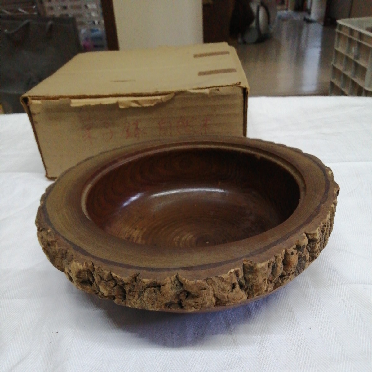 - 天然木 自然木 菓子器 無垢 菰野入 (約19.7が18.5×高さ6cm) 送料520円可能