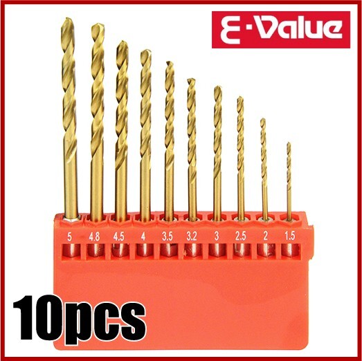 - E-Value チタン鉄工ドリルセット ETDT-10HEX 10pcs 電動 充電 インパクトドライバー ドリルドライバー
