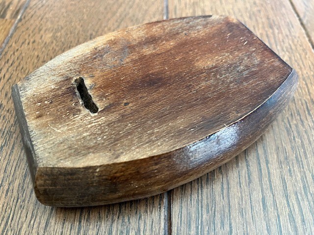 - 木製 無垢 四角 樽型 台 ブラウン、茶色 縦9.4㎝ 横6.2㎝ 高さ2.2㎝ 穴横1.5㎝ 重量72g ペーパーナイフ立て 送料無料 底値