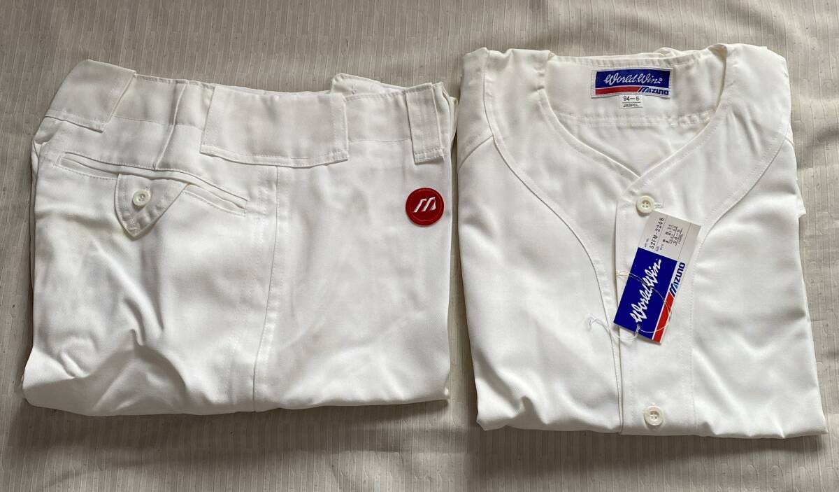 - 野球ユニフォーム 上下 ミズノ/mizuno M=L相当 白色 練習用 94-5号 身長170cm ウエスト80cm◎◎未使用品
