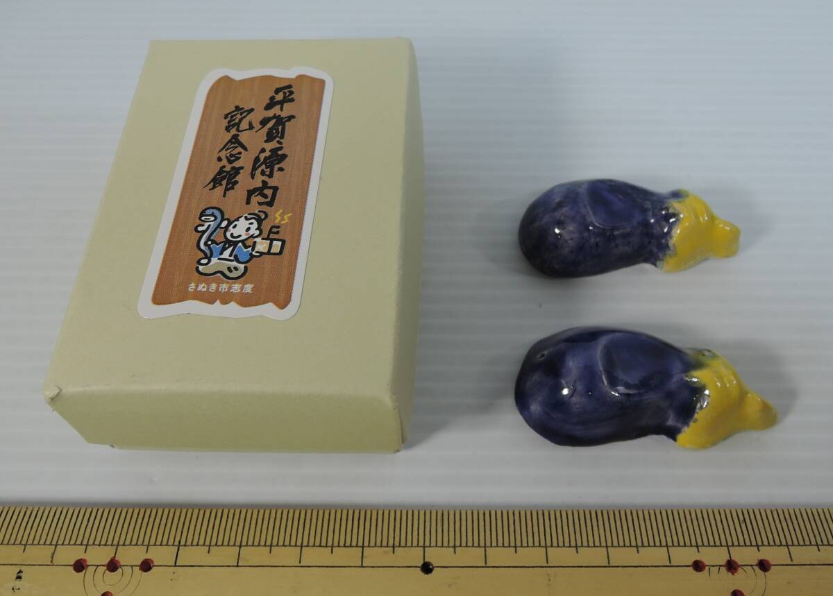 - ☆05G■復元 源内焼 茄子 なすび 箸置き 2個■未使用