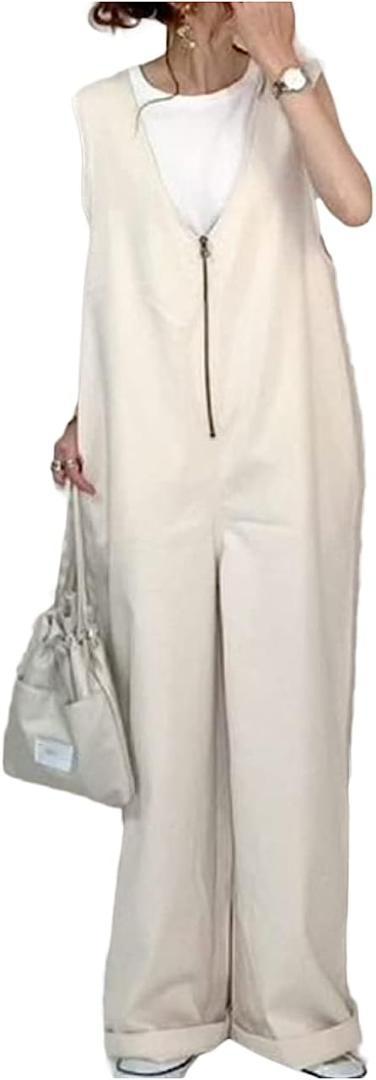 - 【F】サロペットパンツ ベージュ レディース パンツ 可愛い おしゃれ 体型 白 人気 モデル 体型カバー トレンドカラー 大きいサイズ
