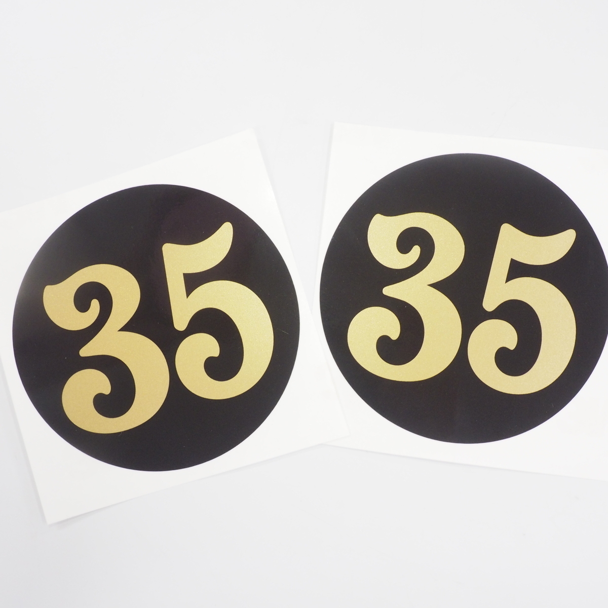- 数字選択可能!クラシックタイプ ゼッケンステッカー2枚セット ブラックゴールド クラシックフォント 20cm