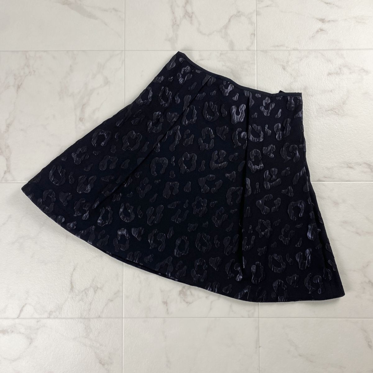 - 美品 dolly-sean ドリー・シーン ヒョウ柄 アニマル柄 フレアスカート 膝丈 裏地あり 黒 ブラック サイズ0*OC751