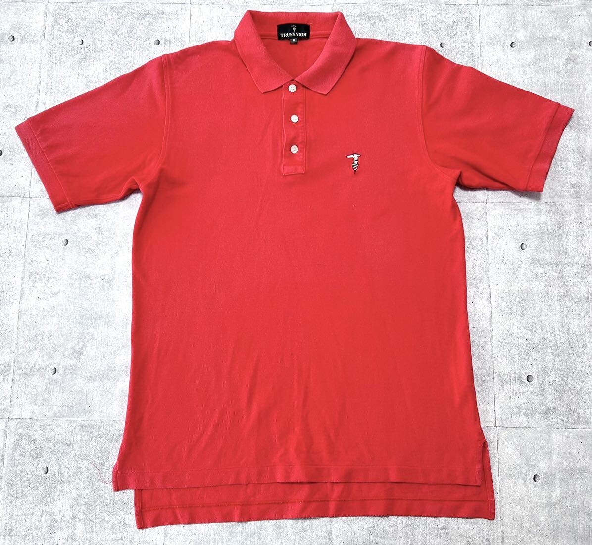 > 90s TRUSSARDI 半袖ポロシャツ ワンポイント 刺繍 フェード 色あせ 90年代 トラサルディ vintage ゴルフウェア タウンユース 石瀬5977