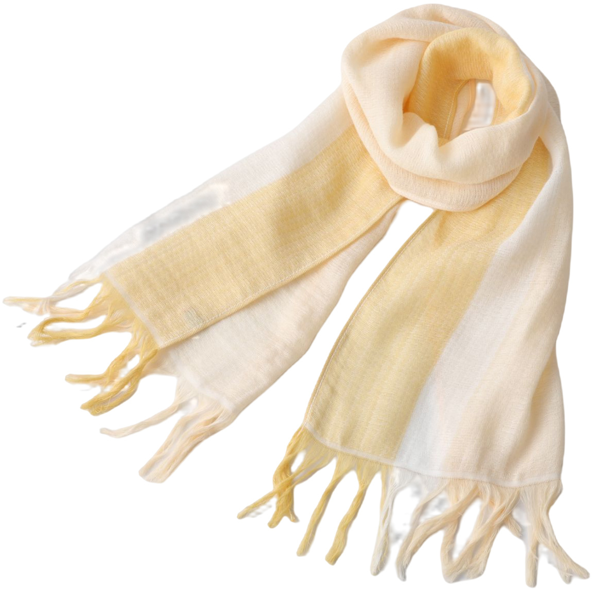 > コントラストがおしゃれな 今治タオル ラインカラー タオルマフラー 150×32cm 黄色×クリーム コットン100% ふんわり軽やかな肌ざわり