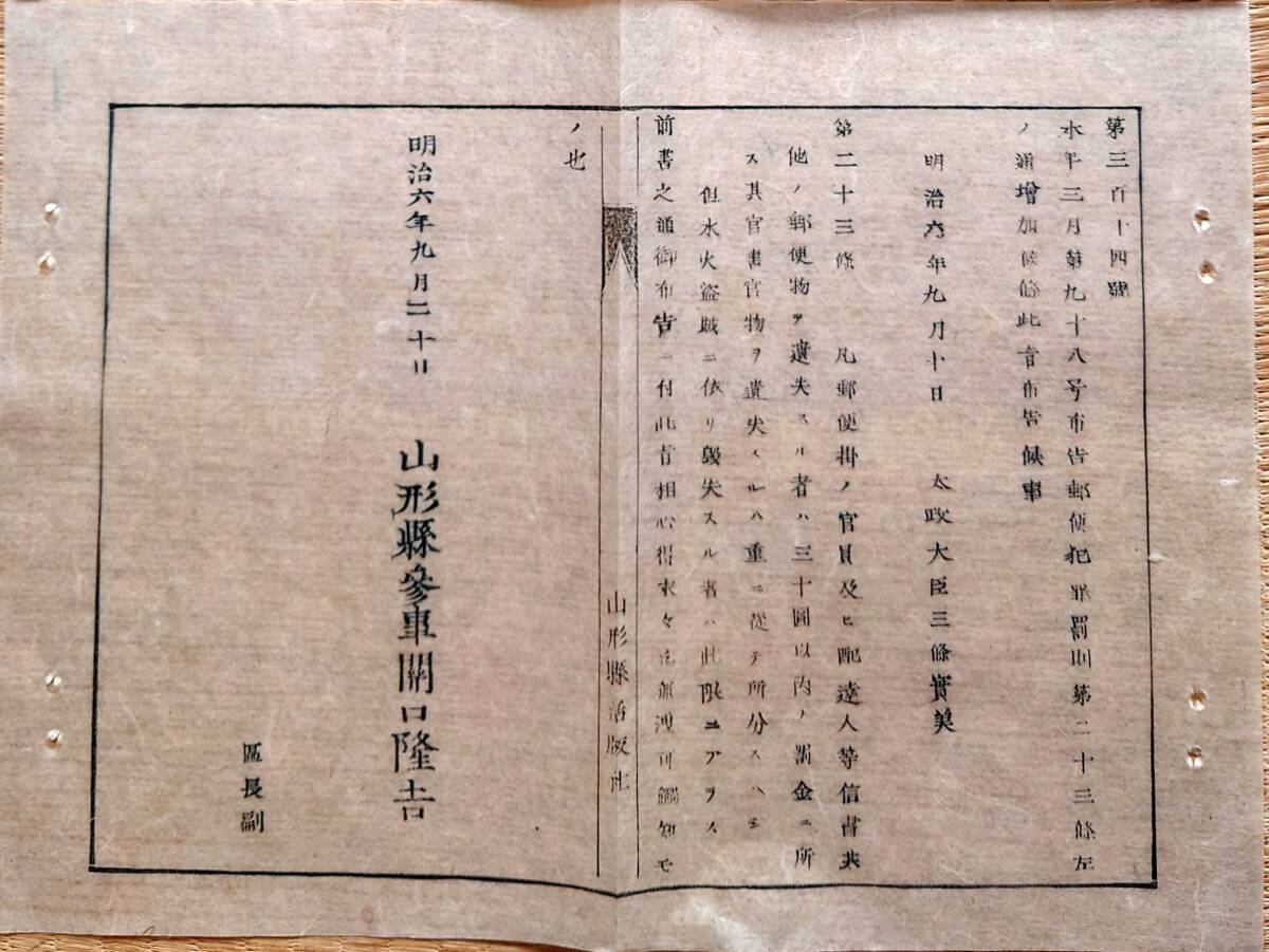 - f24040846〇明治布告布達 郵便物を遺失する者罰金 明治6年 山形県〇和本古書古文書