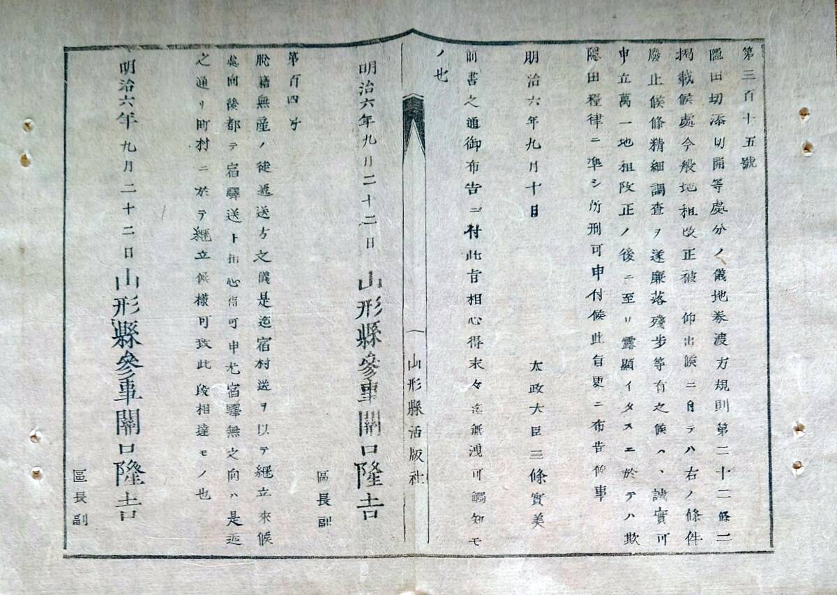 - f24040849〇明治布告布達 隠田切添切開等処分の儀 脱籍無産の徒 明治6年 山形県〇和本古書古文書