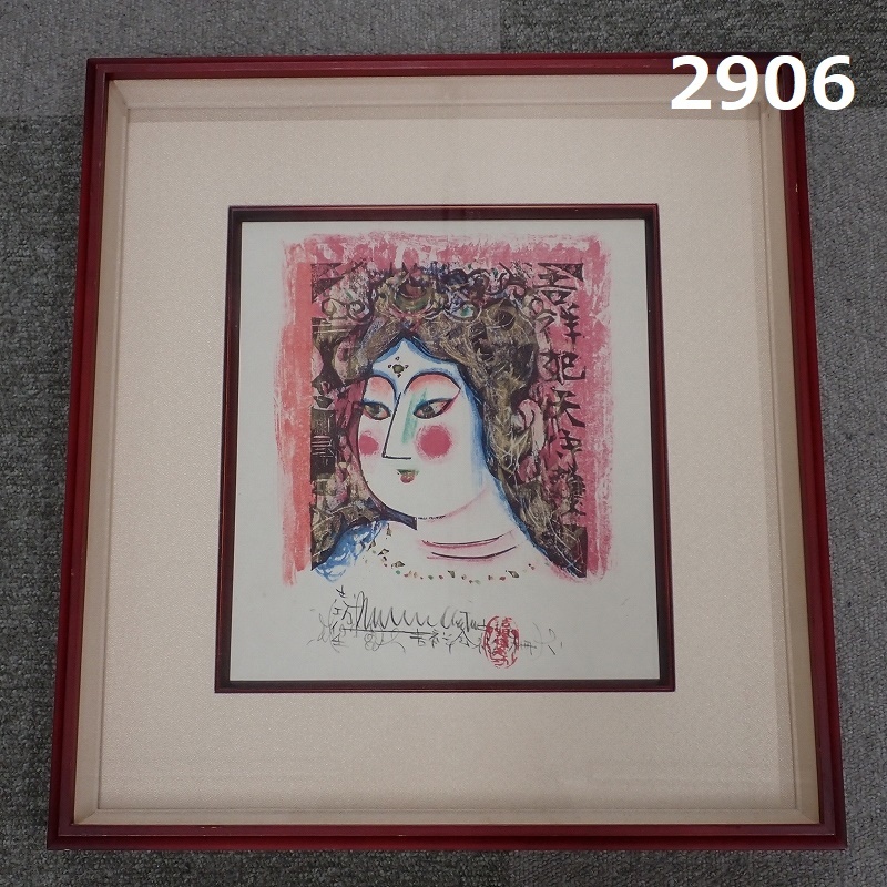 - FK-2906◆工芸品 棟方志功 吉祥妃の柵額装 20240412