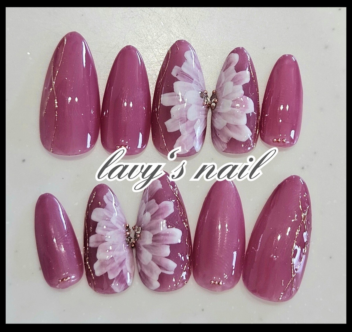 - くすみローズピンク 奥行きフラワージェルネイルチップ