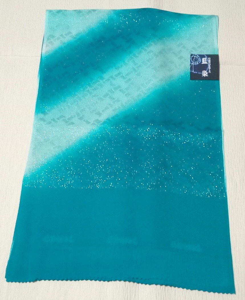 - 7513 藍染 *夏*正絹 帯揚げ「セイジ・ぼかし」